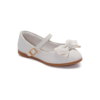 Zapato blanco con lazo de perlita para bebé, está diseñado para ofrecer comodidad y protección desde los primeros pasos.