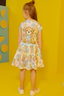 Bello vestido en tela flytech, viene con una mochilita de osito